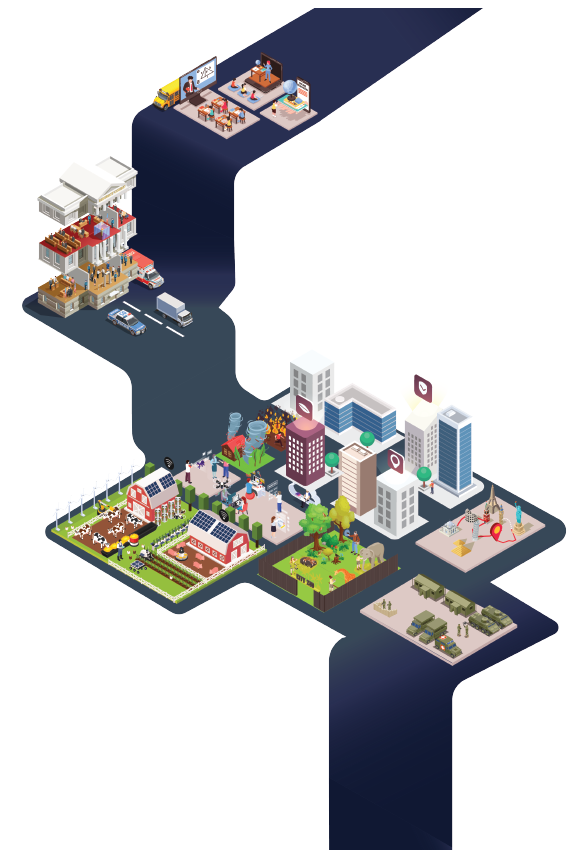 Konsep smart system yang berintegrasi dari empat teknologi saat ini, yaitu IoT dan Robotic, Human Content Interaction, Modeling, Simulation & Artificial Intelligence yang diwujudkan dalam platform big data